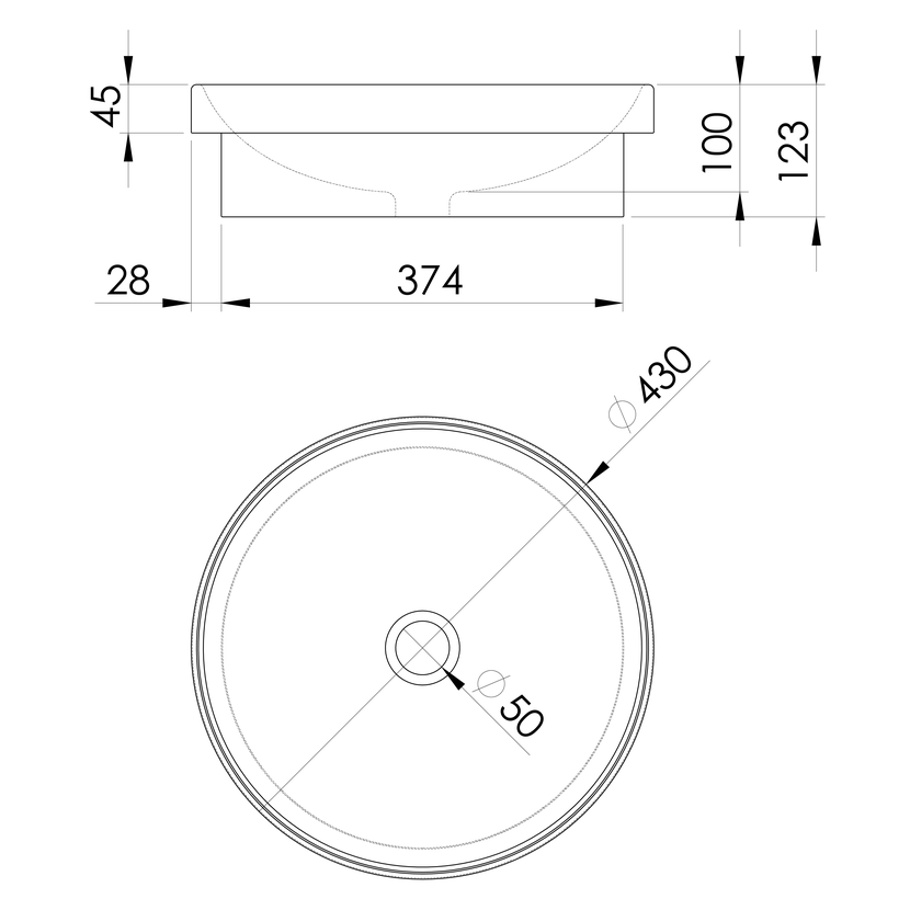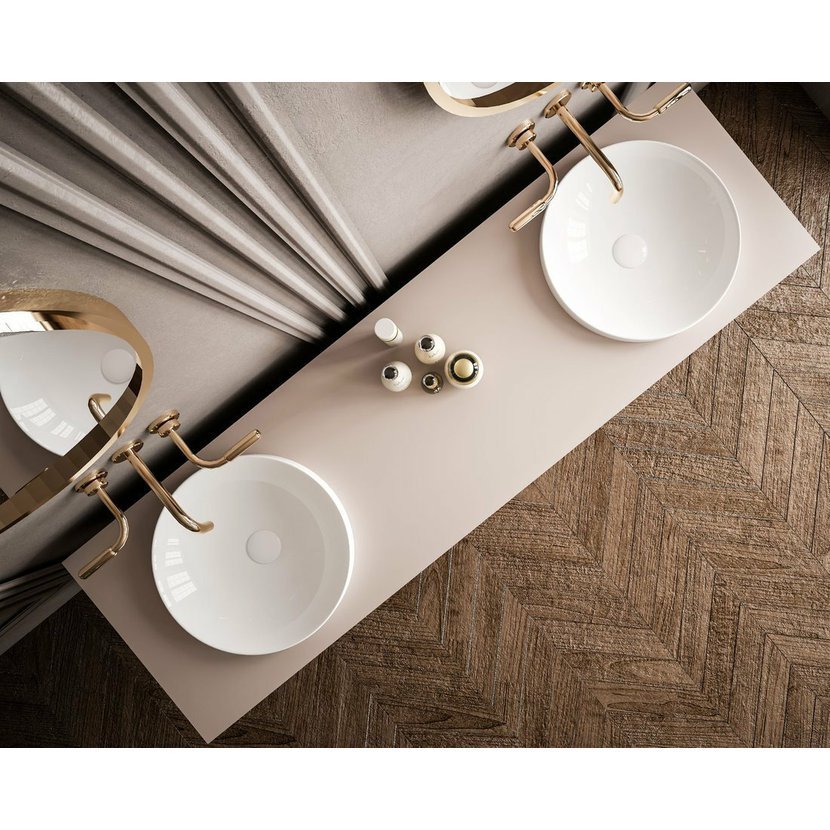 Parametry produktu  Keramické umyvadlo zápustné, průměr 43cm, bílá