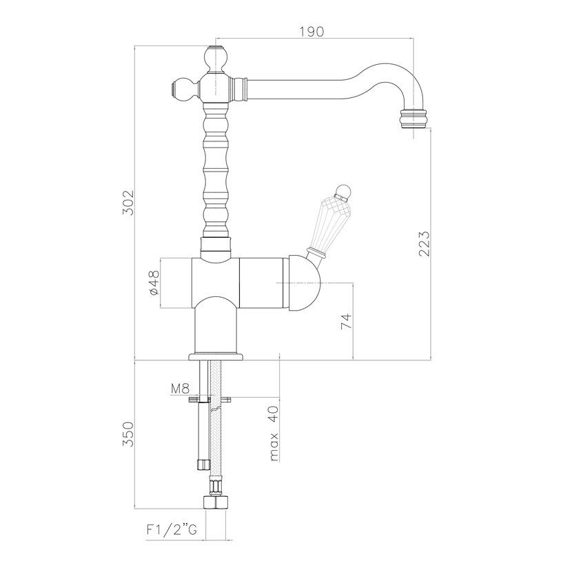 Parametry produktu KIRKÉ CRYSTAL stojánková dřezová baterie, páčka krystal, zlato