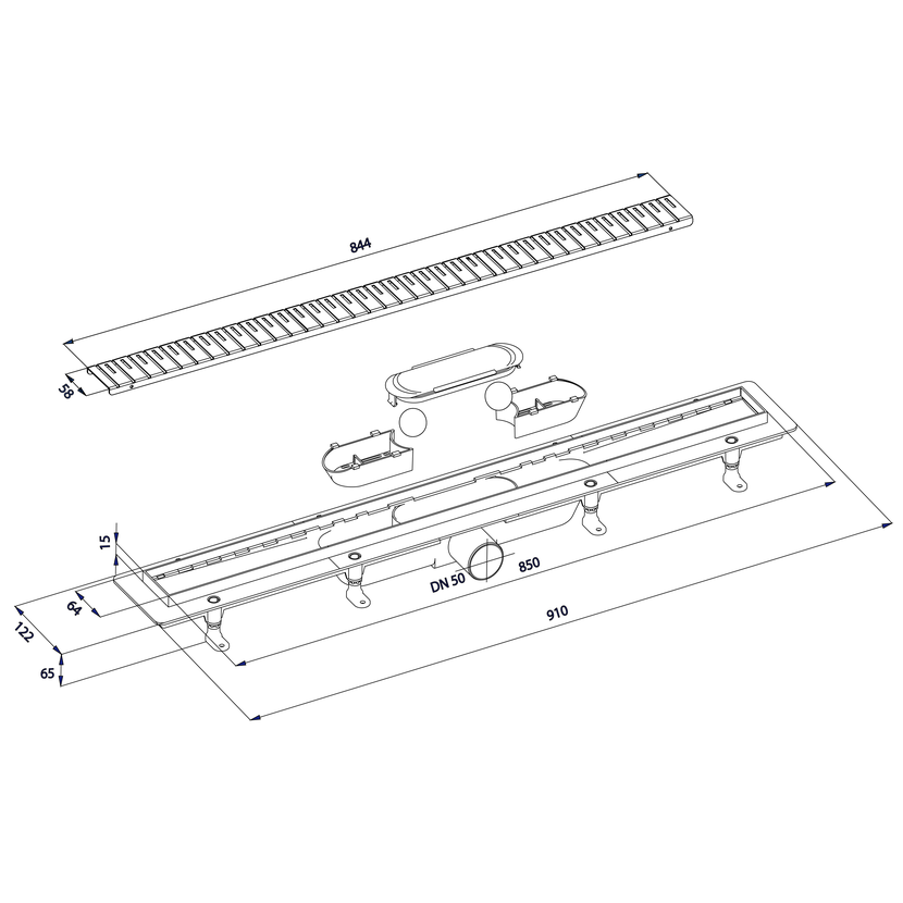 Parametry produktu  KLAVER podlahový žlab s nerezovým roštem, L-910, DN50