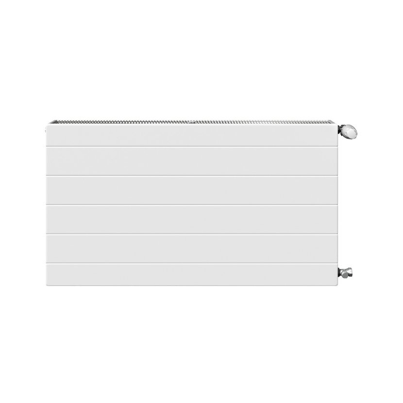 Deskové otopné těleso s hladkou čelní deskou a jemnými horizontálními prolisy sloužící jako náhrada článkových litinových nebo ocelových radiátorů