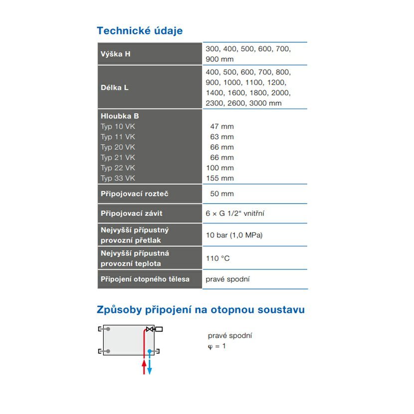 Parametry produktu KORADO Radik VK 11 deskový radiátor 500x1600 11050160-60-0010