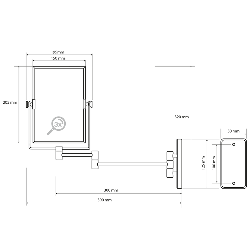Parametry produktu  Kosmetické zrcátko závěsné, 150x205mm, oboustranné, chrom