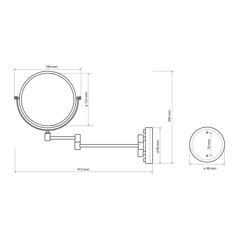 Parametry produktu  Kosmetické zrcátko závěsné, O 140mm, oboustranné, zlato