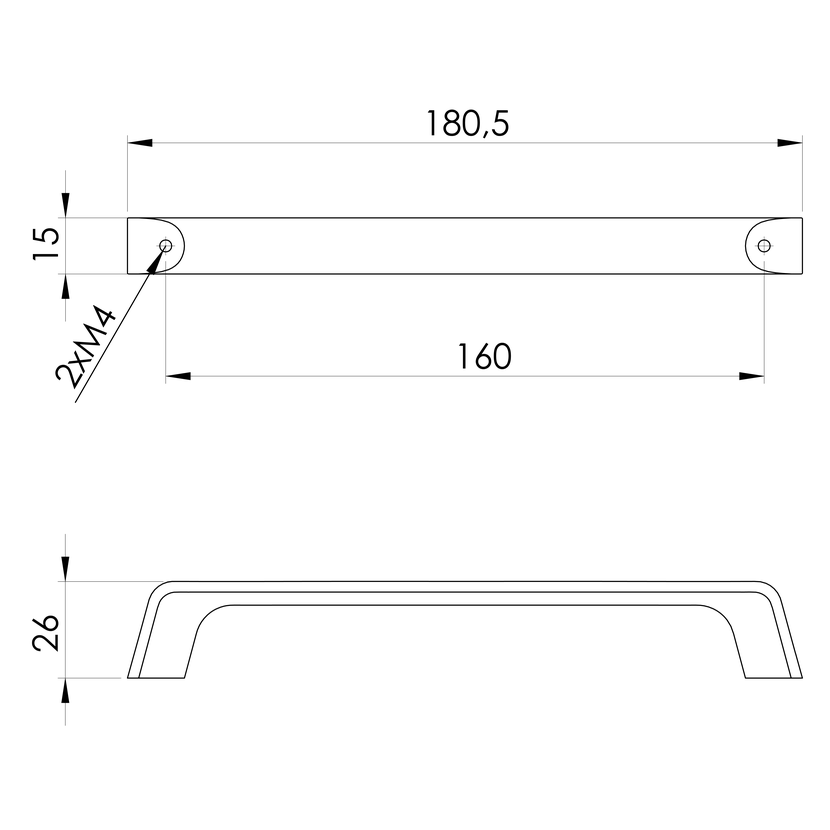 Parametry produktu  Kovová úchytka, 180,5/160mm, zlato mat