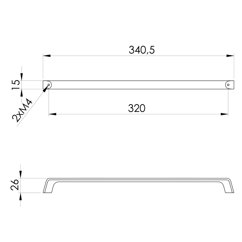 Parametry produktu  Kovová úchytka, 340,5/320mm, zlato mat