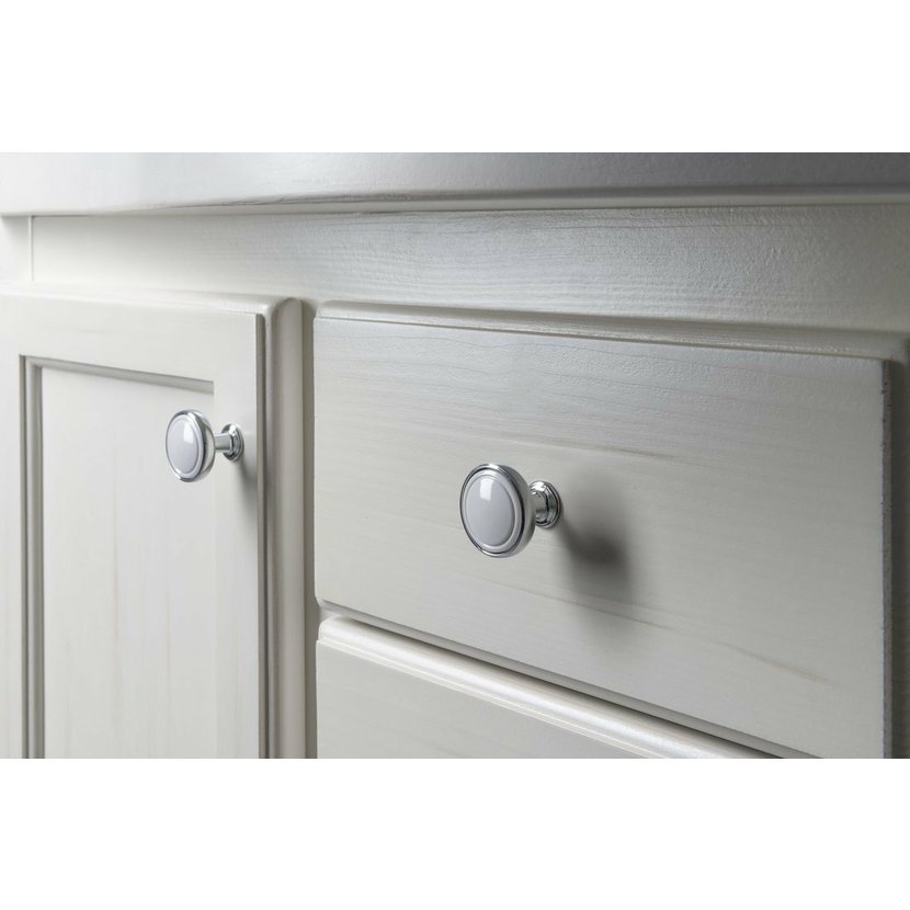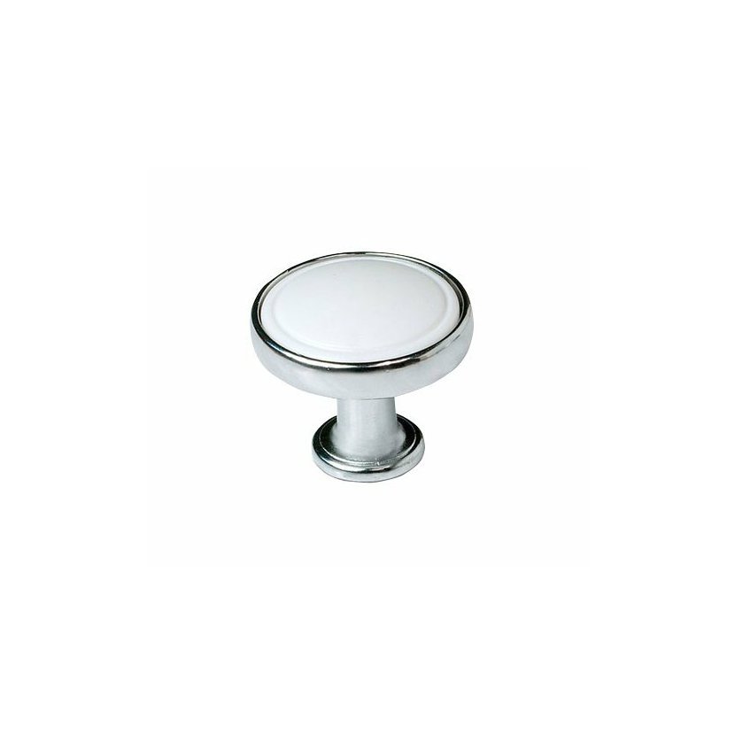Parametry produktu  Kovová úchytka, průměr 30mm, chrom/bílá