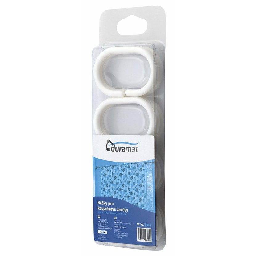 Kroužky na sprchový závěs 12 ks, plast, bílá