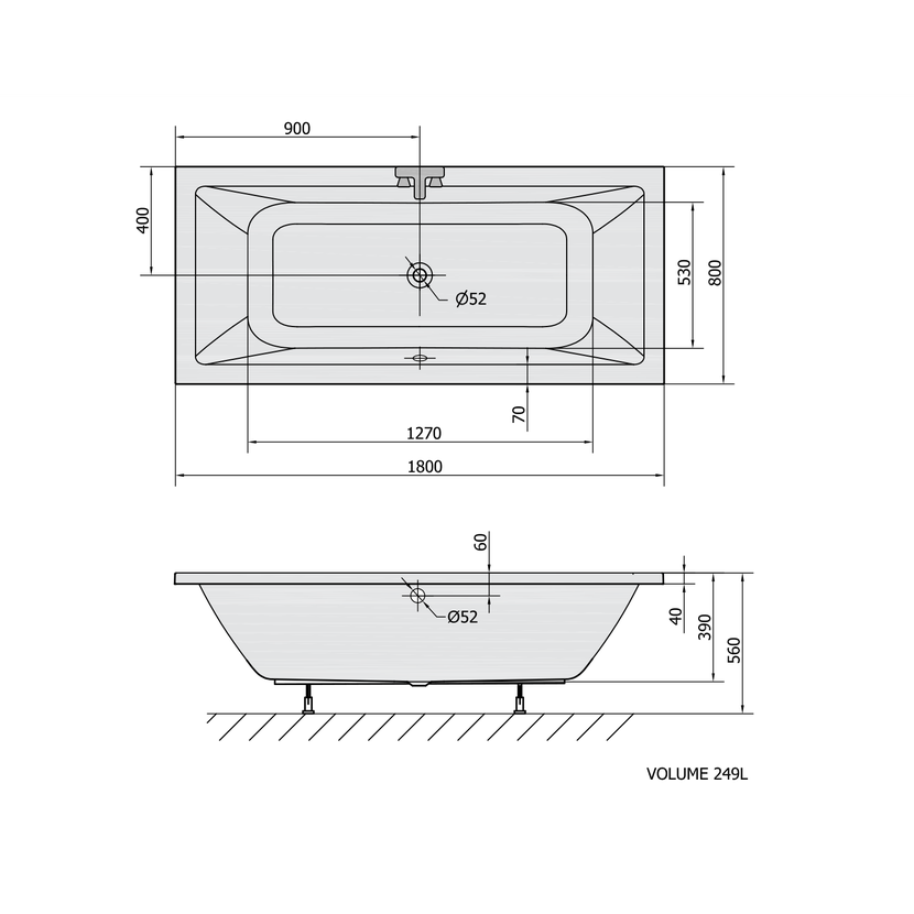 Parametry produktu KRYSTA obdélníková vana 180x80x39cm, bílá