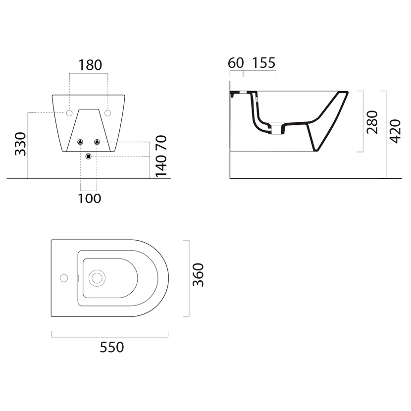 Parametry produktu KUBE X bidet závěsný 36x55cm, bílá ExtraGlaze