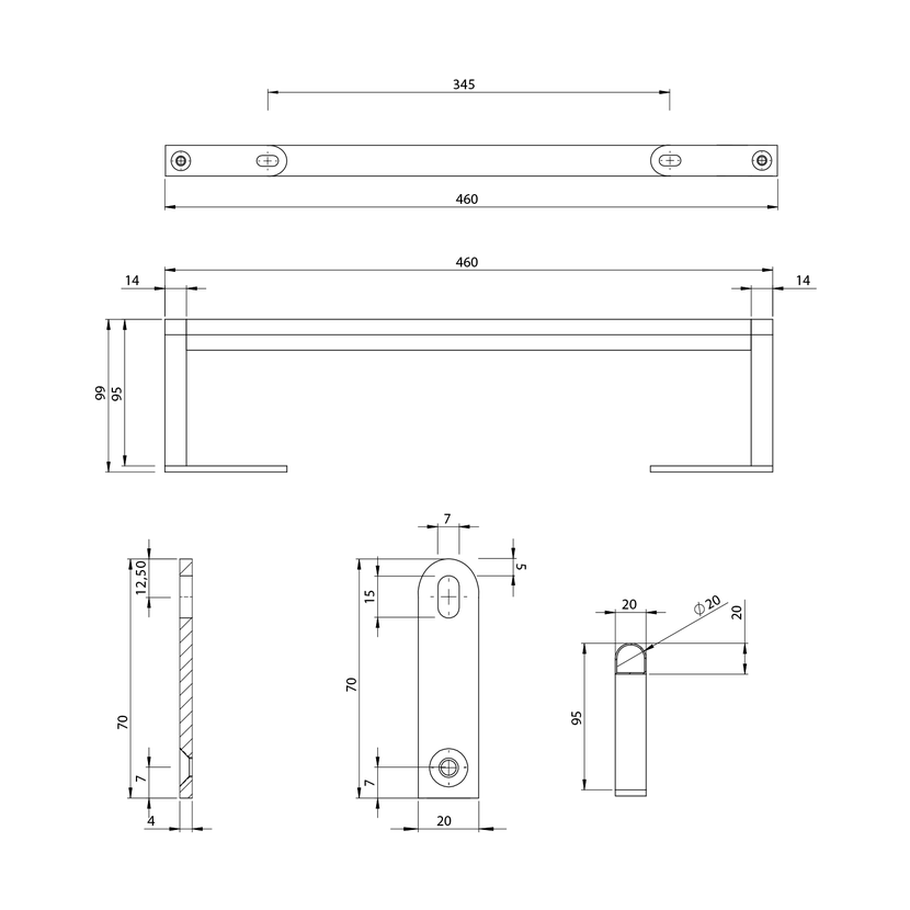 Parametry produktu  KUBE X držák ručníků 50cm, pro umyvadlo 9486, chrom