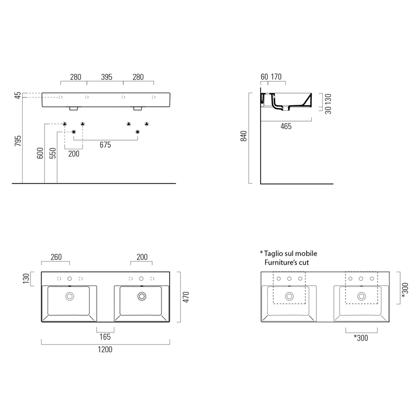 Součástí série umyvadel jsou navíc dvě kulatá umyvadla na desku a dvě obdélníková vestavná umyvadla, všechna s velmi štíhlými hranami.