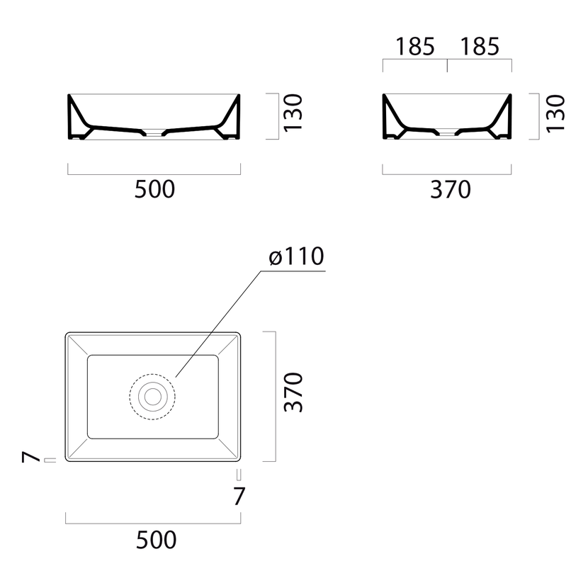 Součástí série umyvadel jsou navíc dvě kulatá umyvadla na desku a dvě obdélníková vestavná umyvadla, všechna s velmi štíhlými hranami.