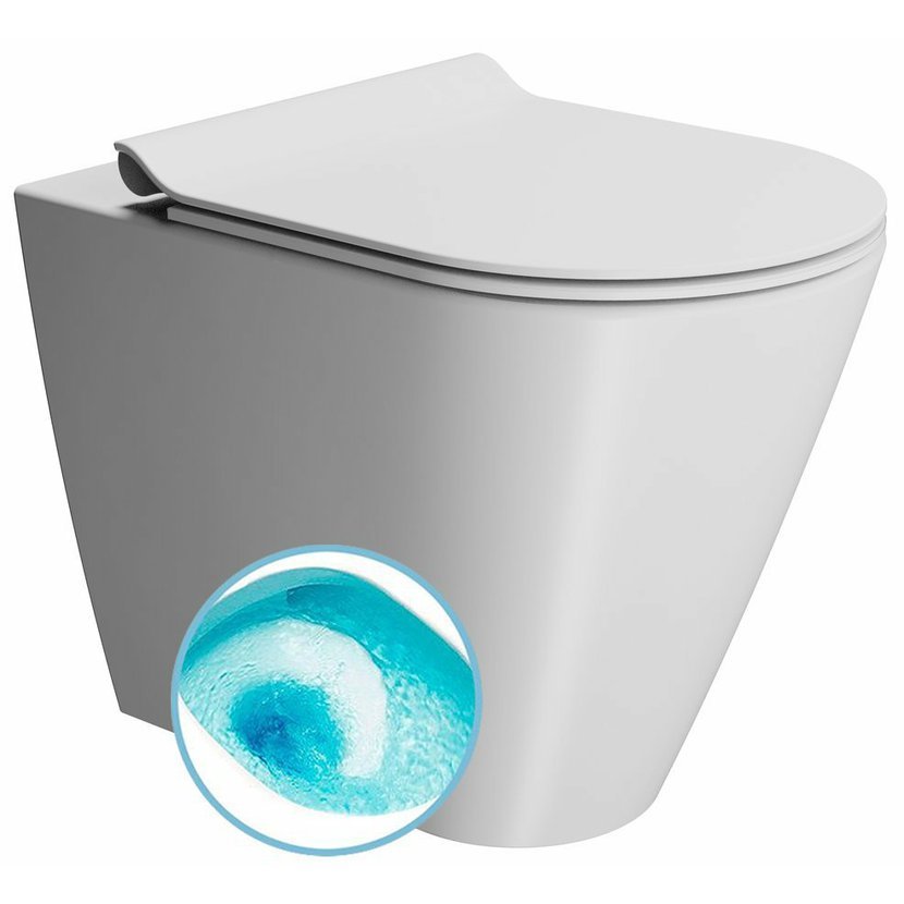 Absence tradičního splachovacího kruhu pod okrajem mísy v kombinaci s glazurou Extraglaze®, která dodává keramice dokonale hladký povrch a působivý lesk, zajišťuje maximální hygienu a snížení námahy při čištění WC. Samozřejmostí je duální systém splachování s množstvím vody 3 nebo 4,5 l.