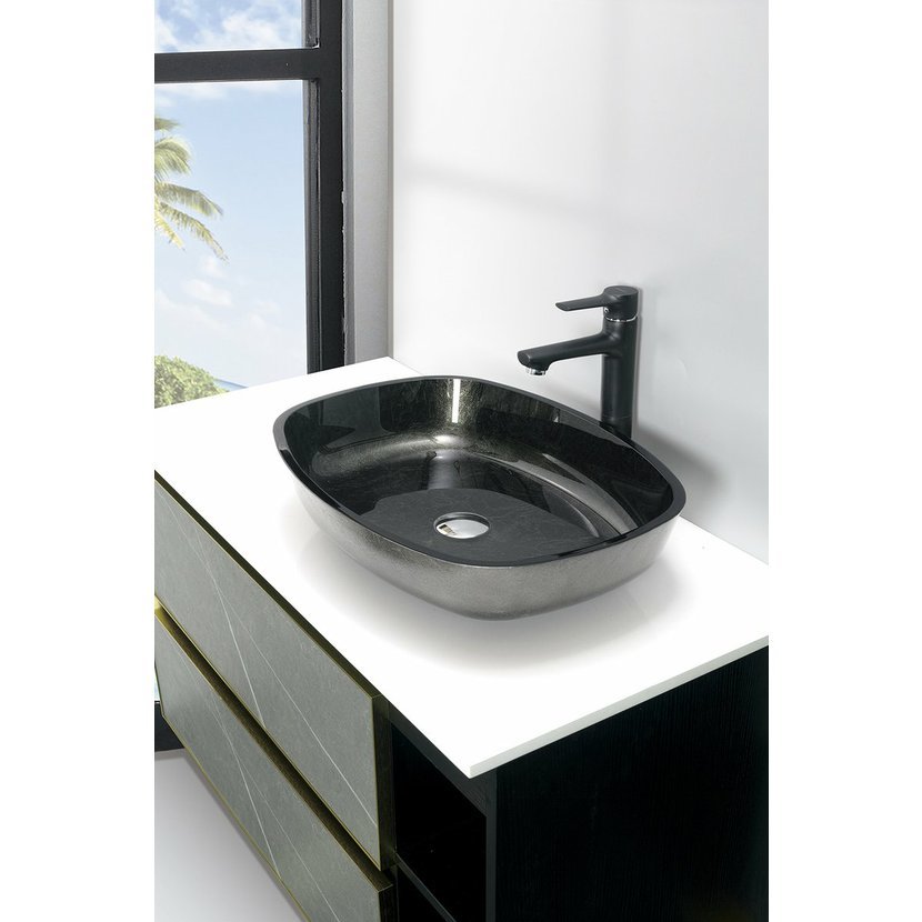KVAORE skleněné umyvadlo na desku, 54x39,5cm, černá