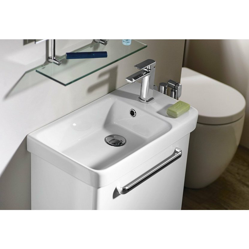 Malé rozměry koupelnového nábytku LATUS umožňují instalaci především do stísněných prostor, obzvláště na toalety. Skříňka se přímo nabízí k uskladnění čistících a hygienických prostředků nebo toaletního papíru. Umyvadlo z litého mramoru nebo keramiky vytváří se skříňkou kompaktní celek. V nabídce je jak několik tvarů umyvadel, tak barevných dekorů skříněk pro větší kompatibilitu.