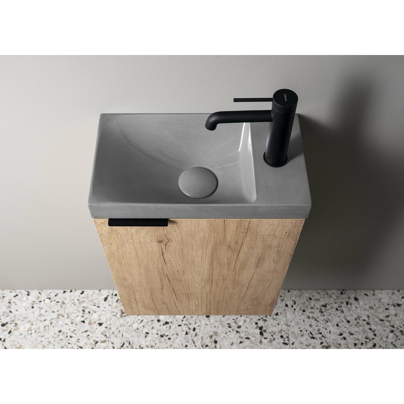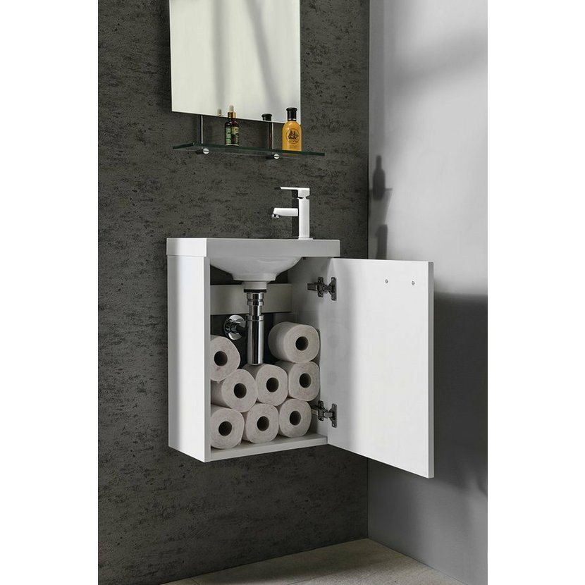 Malé rozměry koupelnového nábytku LATUS umožňují instalaci především do stísněných prostor, obzvláště na toalety. Skříňka se přímo nabízí k uskladnění čistících a hygienických prostředků nebo toaletního papíru. Umyvadlo z litého mramoru nebo keramiky vytváří se skříňkou kompaktní celek. V nabídce je jak několik tvarů umyvadel, tak barevných dekorů skříněk pro větší kompatibilitu.
