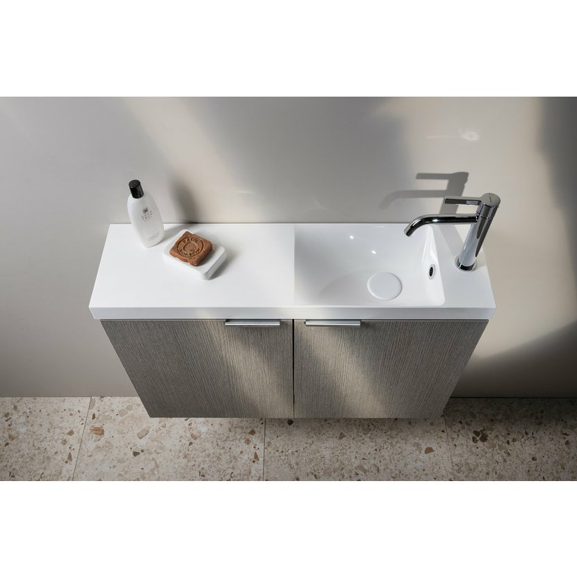 Malé rozměry koupelnového nábytku LATUS X umožňují instalaci především do stísněných prostor, obzvláště na toalety. Skříňka se přímo nabízí k uskladnění čistících a hygienických prostředků nebo toaletního papíru. Umyvadlo z litého mramoru nebo betonu vytváří se skříňkou kompaktní celek. Navíc je možná i varianta desky a umyvadla na desku. V nabídce je jak několik tvarů umyvadel, tak barevných dekorů skříněk pro větší kompatibilitu.