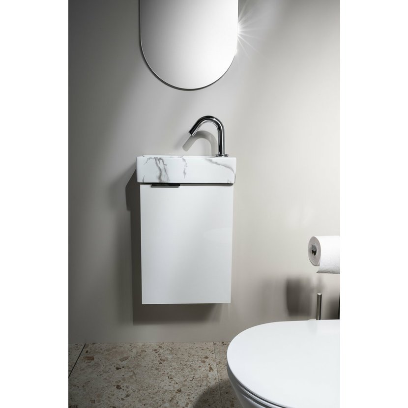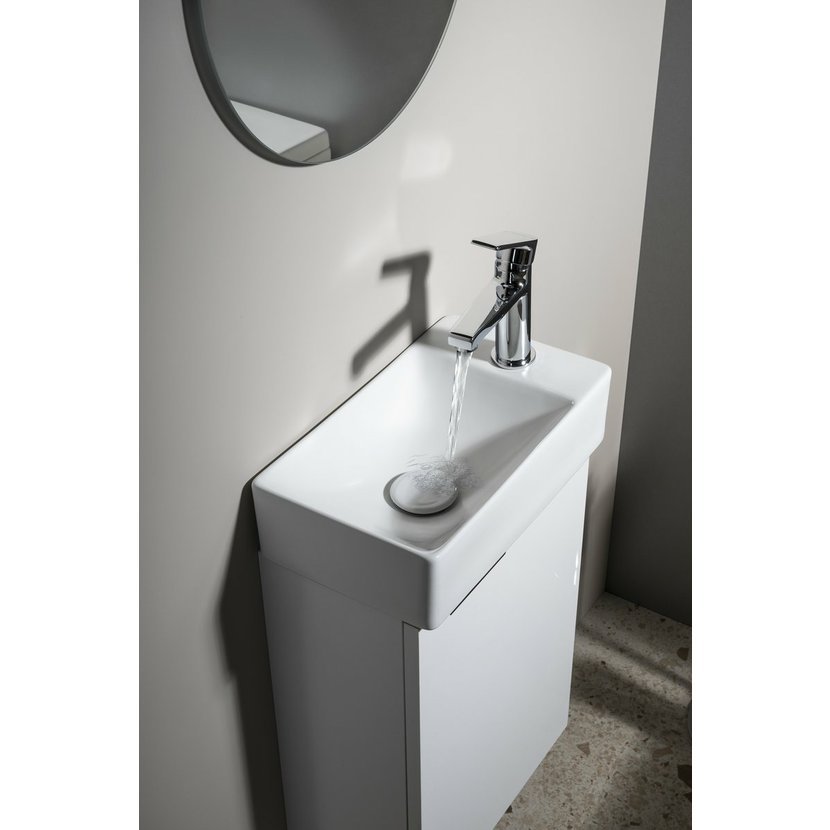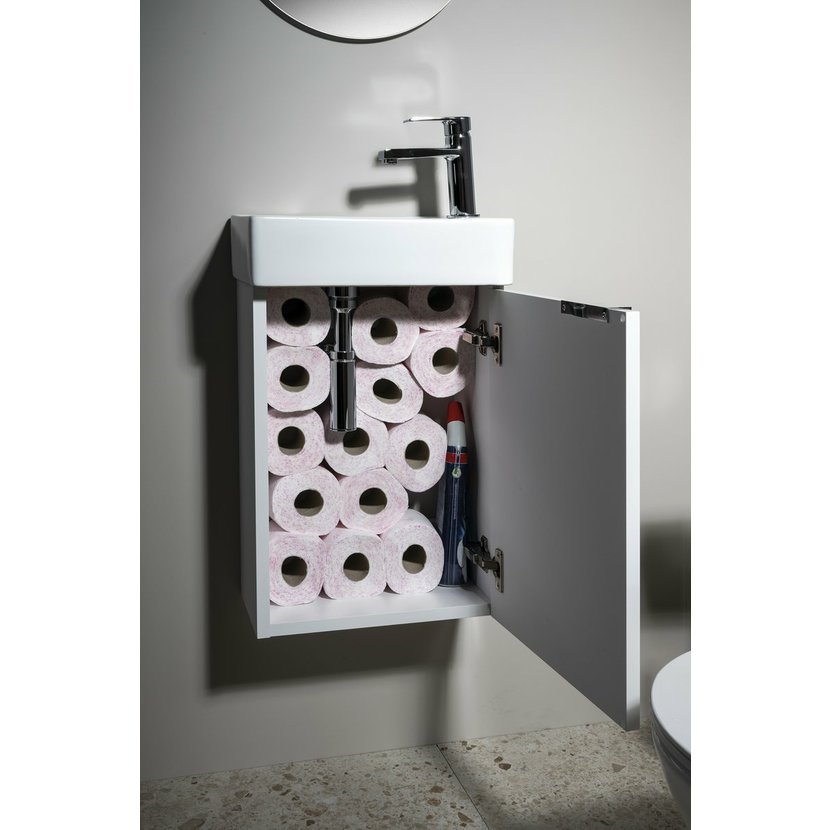 Malé rozměry koupelnového nábytku LATUS XII umožňují instalaci především do stísněných prostor, obzvláště na toalety. Skříňka se přímo nabízí k uskladnění čistících a hygienických prostředků nebo toaletního papíru. Umyvadlo z keramiky vytváří se skříňkou kompaktní celek. V nabídce je jak několik barev umyvadla, tak barevných dekorů skříněk pro větší kompatibilitu.
