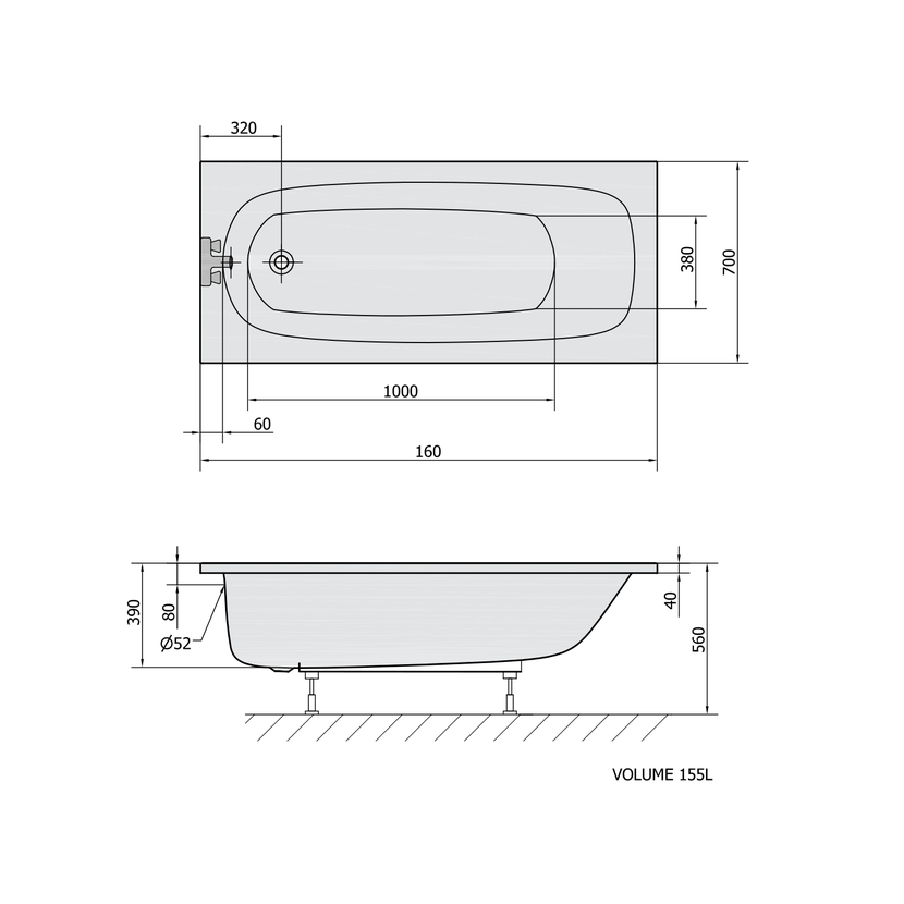 Parametry produktu LAURA obdélníková vana 160x70x39cm, bílá