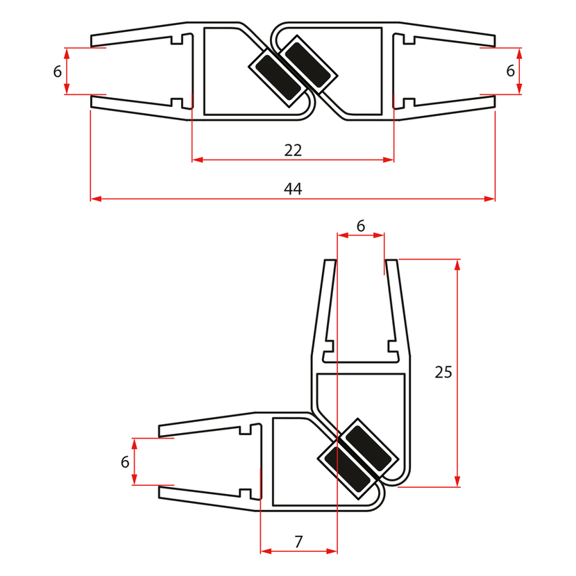 LEGRO náhradní set magnetických těsnění pro čtvercové zástěny, 1900mm