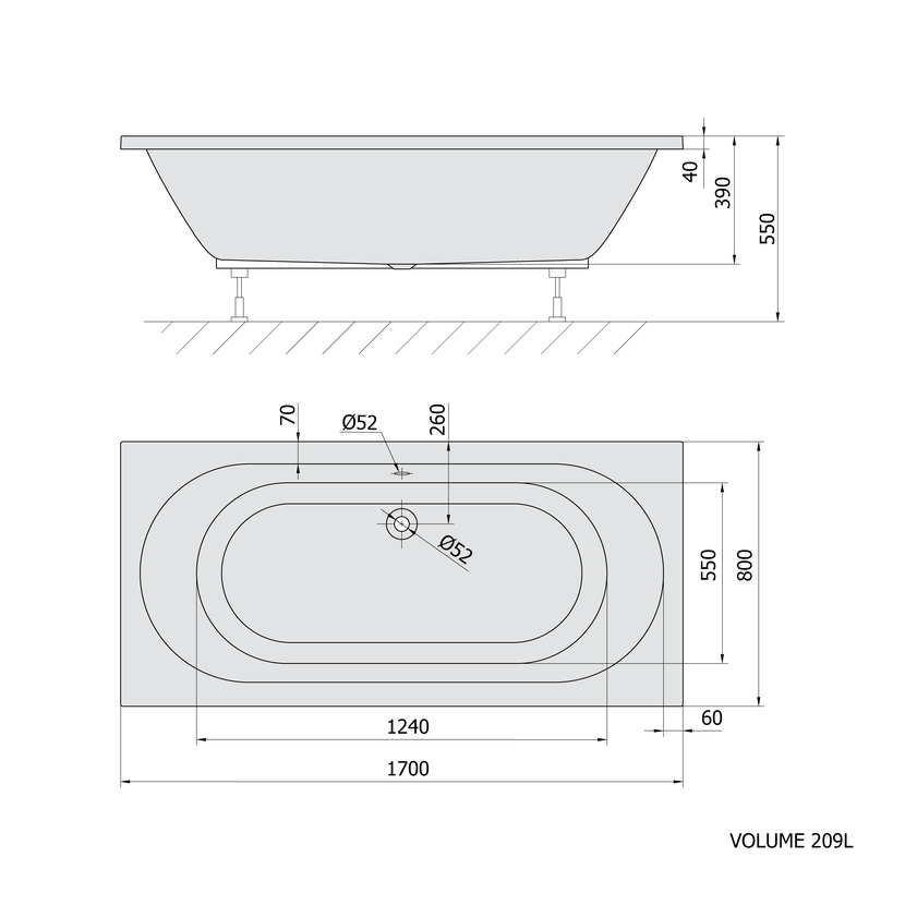 Parametry produktu LEVANA obdélníková vana 170x80x39cm, bílá