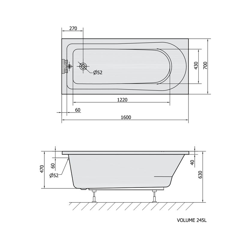 Parametry produktu LISA obdélníková vana 160x70x47cm, bílá
