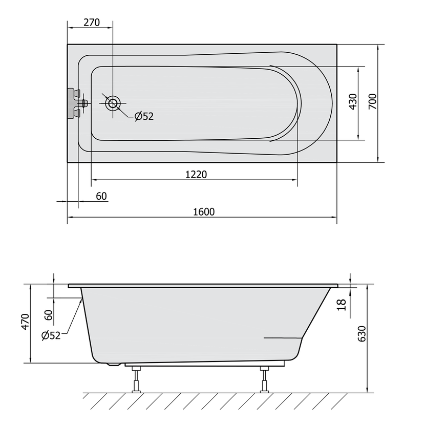 Parametry produktu LISA SLIM obdélníková vana 160x70x47cm, bílá