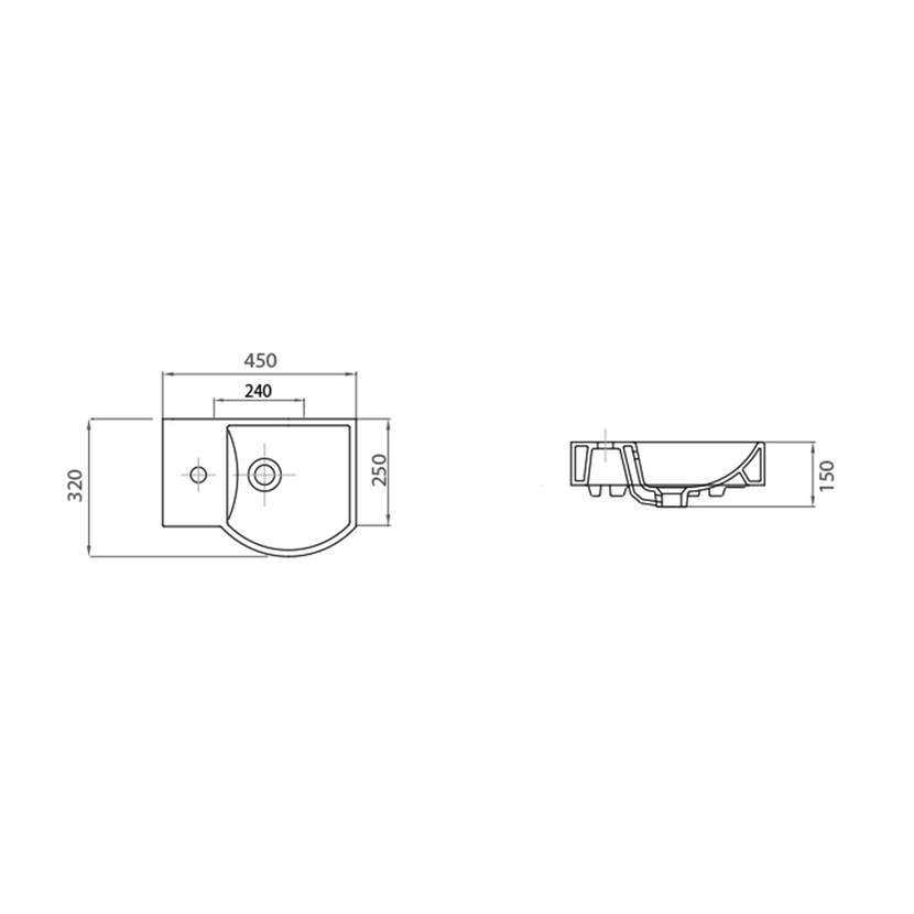 Parametry produktu LITOS keramické umývátko rohové, 45x32cm, baterie vlevo, bílá