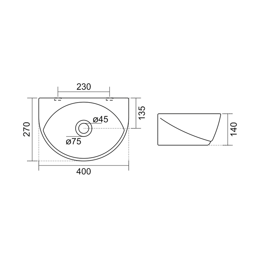 Parametry produktu  LIZA keramické umývátko 40x27cm, bílá