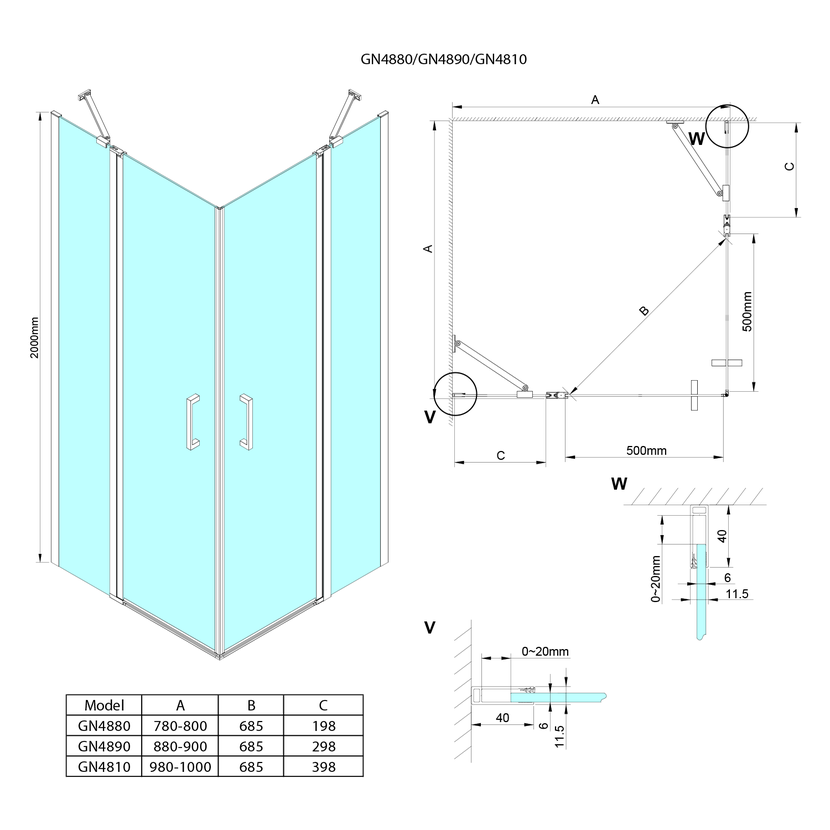 Parametry produktu  LORO čtvercový sprchový kout 1000x1000 mm, rohový vstup
