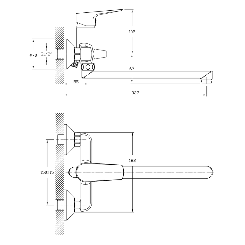 Parametry produktu LOTTA nástěnná umyvadlová/vanová baterie, chrom