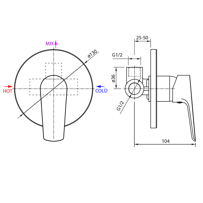 Parametry produktu LOTTA podomítková sprchová baterie, 1 výstup, černá mat