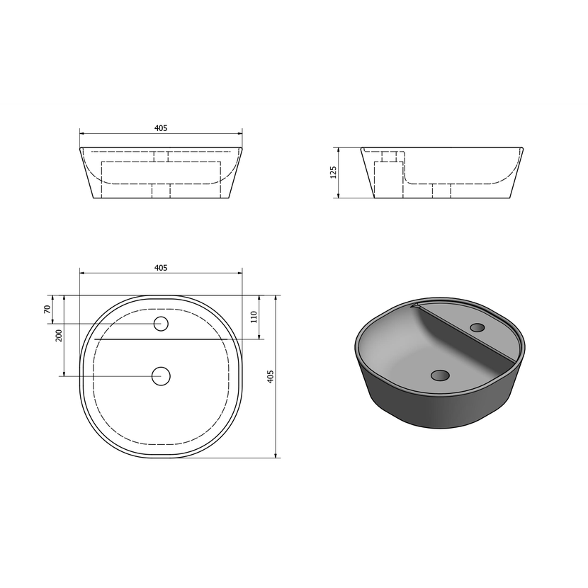Parametry produktu  LUGANO keramické umyvadlo na desku, O 40cm, bílá