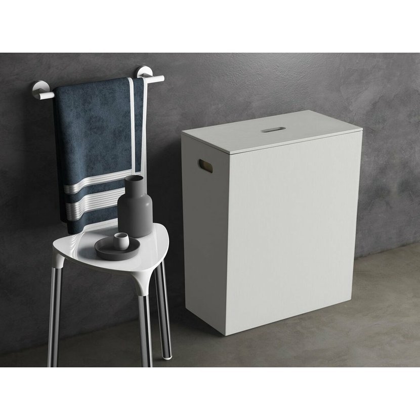 Stylové doplňky pro koupelnu v moderních barvách, vyrobené ze dřeva potaženého syntetickou kůží. Dokonalé zpracování je podtrženo ozdobným švem. Prádelní koš LUXURY se stane nepostradatelnou součástí koupelny.