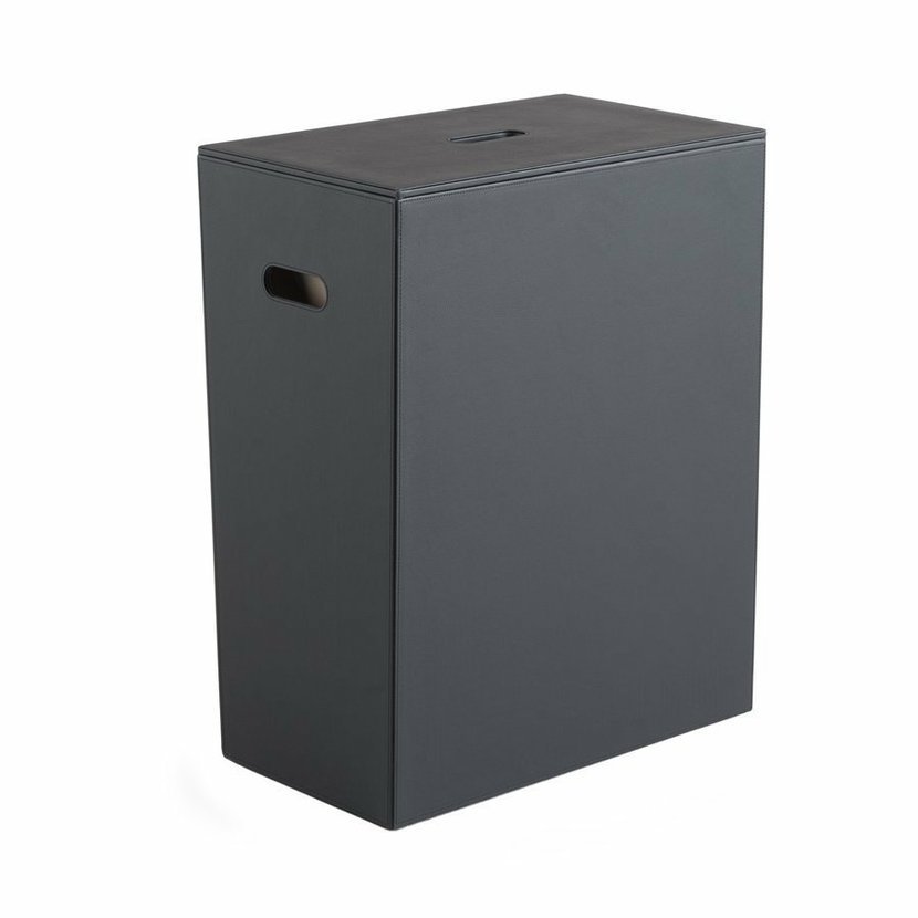 Stylové doplňky pro koupelnu v moderních barvách, vyrobené ze dřeva potaženého syntetickou kůží. Dokonalé zpracování je podtrženo ozdobným švem. Prádelní koš LUXURY se stane nepostradatelnou součástí koupelny.