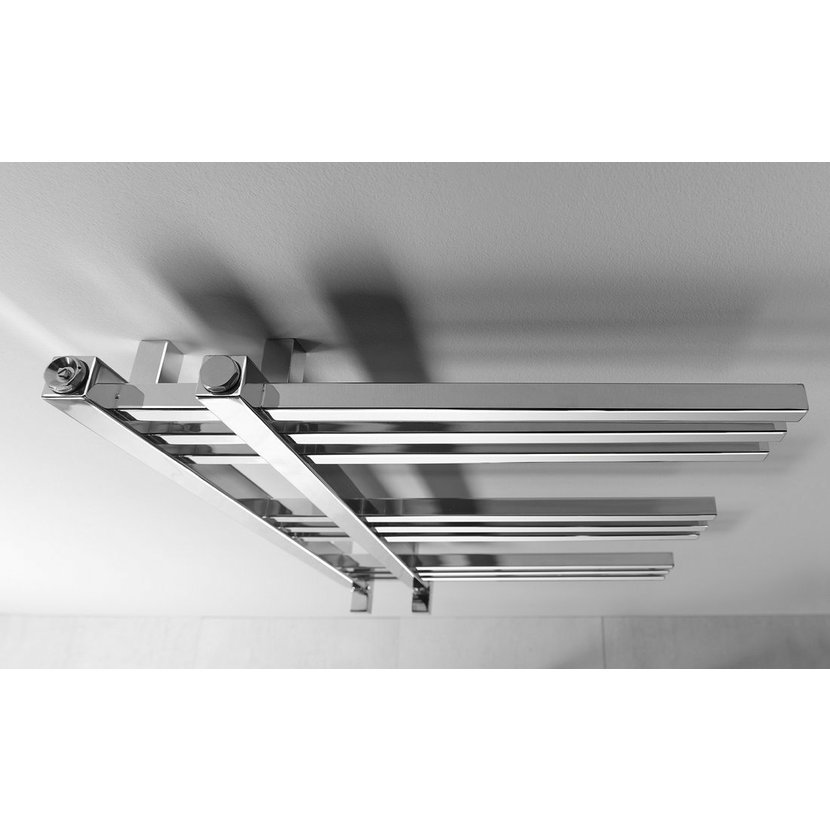 Designově tvarované koupelnové otopné těleso s výjimečným vzhledem je vyrobeno z pochromovaných ocelových trubek. Radiátor lze zavěsit oboustranně.