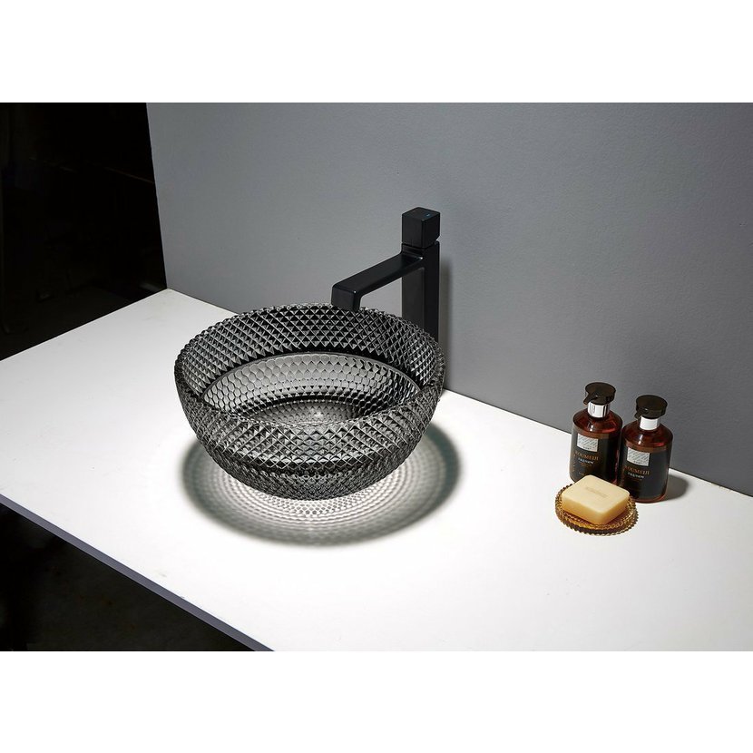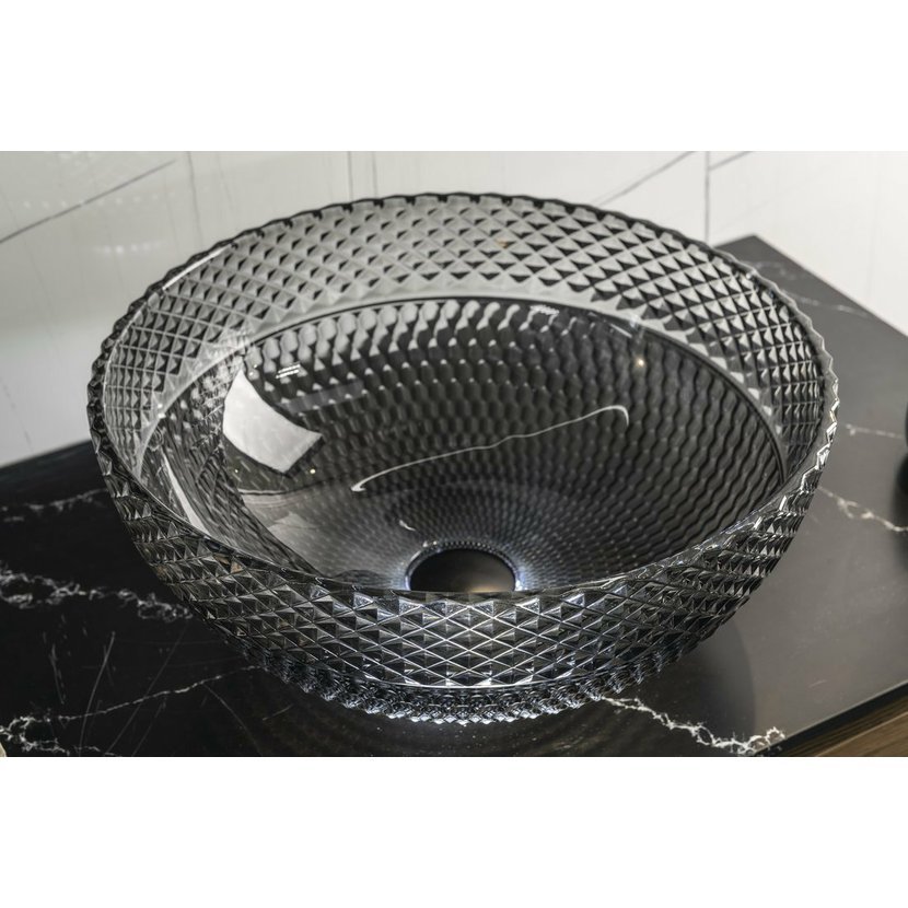 MARAC skleněné gravírované umyvadlo na desku O 39,5 cm, černá