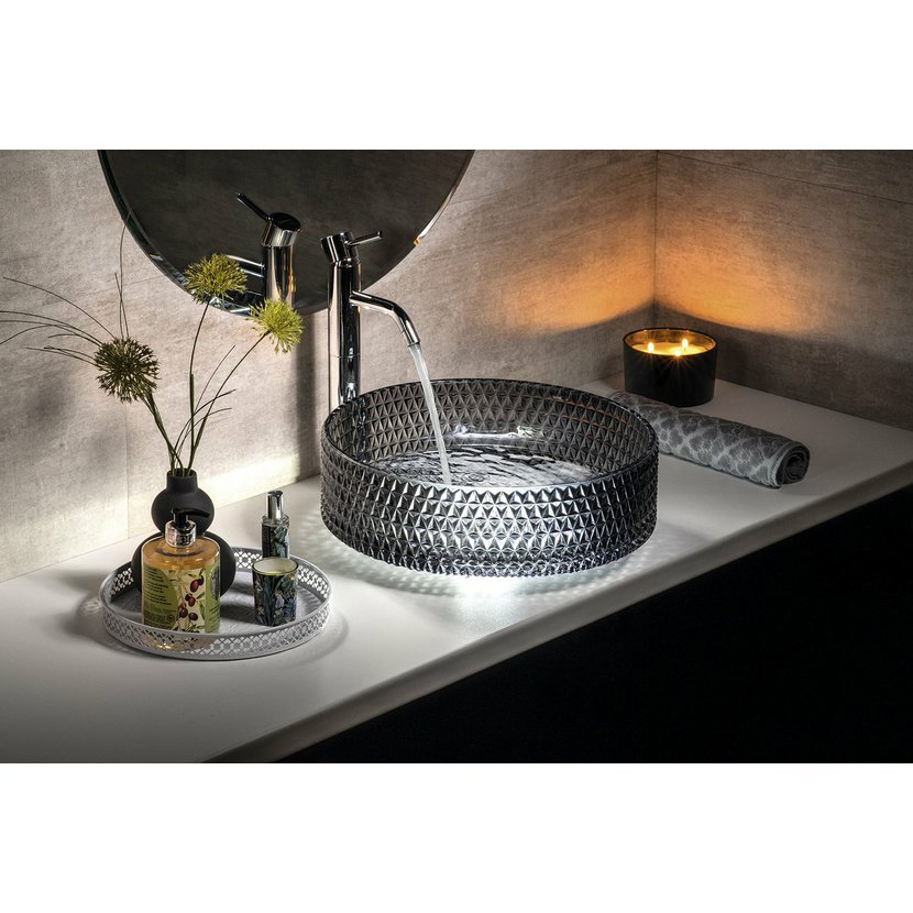 Parametry produktu  MARAGUA skleněné gravírované umyvadlo na desku O 39,5cm, černá