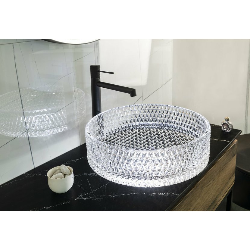 MARAGUA skleněné gravírované umyvadlo na desku O 39,5 cm, čirá