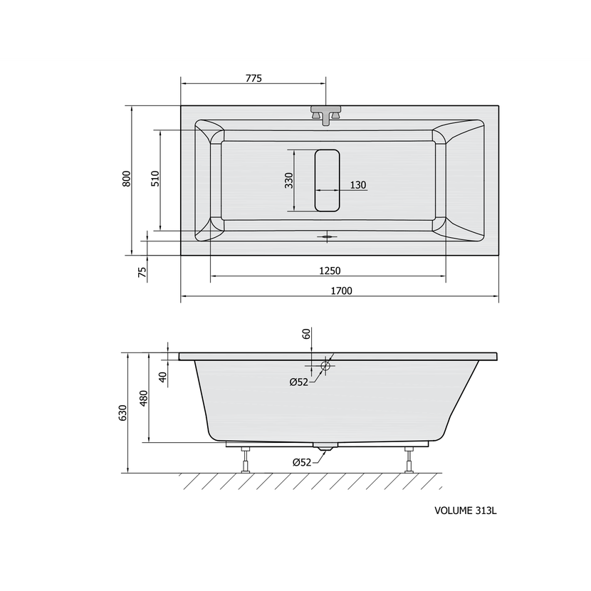 Parametry produktu MARLENE obdélníková vana 170x80x48cm, bílá