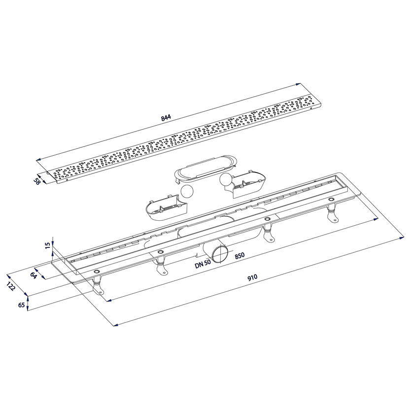 MARMI podlahový žlab s nerezovým roštem, L-910, DN50