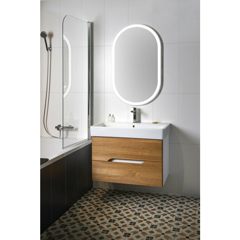 Série MEDIENA je kombinací bílé matné barvy a zásuvek z masivního dřeva, které svým zaoblením kopírují tvar keramických umyvadel SAND od italského výrobce GSI. Zásuvky s netradičním tvarem výřezu pro otvírání jsou vybaveny výsuvy BLUM s funkcí tlumení BLUMOTION s doživotní zárukou. Skříňky nabízíme buď celé v bílém matném provedení nebo v kombinaci korpus matná bílá a čela zásuvek ve 2 dekorech dubového dřeva (voskový olej dub natural a dub graphite). Šířky skříněk jsou 60, 80, 100 a 120 cm. V nabídce jsou též 2 typy doplňkových policových skříněk. Skříňku s prádelním košem získáte jednoduchým vyjmutím spodní police u doplňkové skříňky šíře 35 cm a instalací látkového prádelního koše na suchý zip.