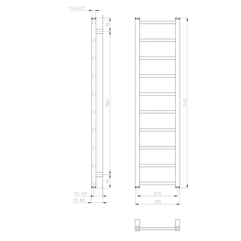 Parametry produktu METRO LIGHT otopné těleso 300x1140 mm, bílá