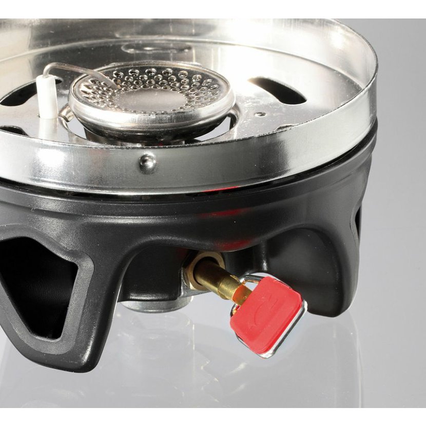 Butanový vařič TRIPPER typ UKP21004 je určen pro turistické účely k provozu ve venkovním prostředí k tepelné přípravě pokrmů. Součásti vařiče je nádoba o objemu 0,8l., která má ve spodní časti tepelný výměník, který urychlí rychlost ohřevu. Vařič tak díky tomu dokáže ohřát stejné množství vody za stejný čas, jako ostatní outdoorové vařiče, jen se třetinovou spotřebou plynu. Set dále obsahuje stojánek pro stabilizaci kartuše, adapter na jiné nádoby, než je dodavany ešus a textilní obal. Vařič používá kartuše s připojovacím závitem 7/16.
