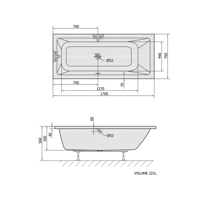 Parametry produktu MIMOA obdélníková vana 170x75x39cm, bílá