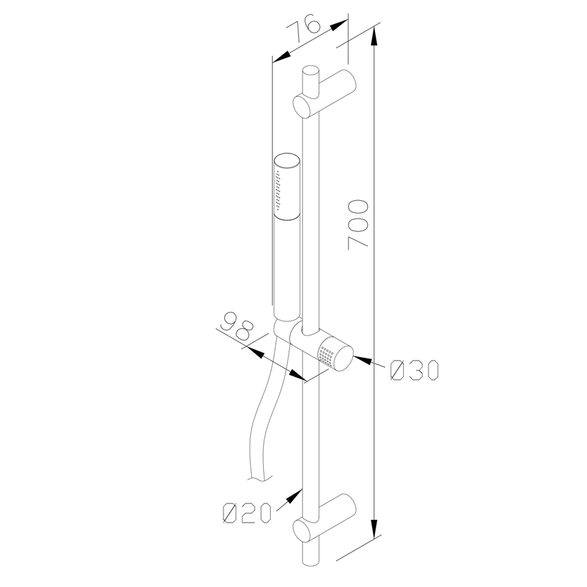 Parametry produktu MINIMAL sprchová tyč, posuvný držák, kulatá, 700mm, nerez