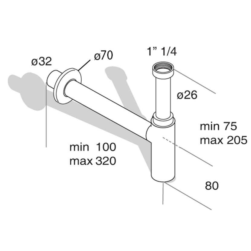 Parametry produktu  MINITOTI sifon pro umývátko, 5/4", odpad 32mm, černá mat