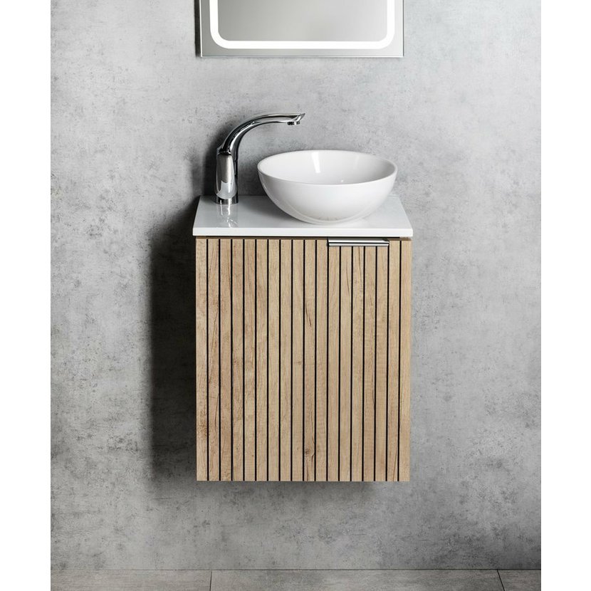 Parametry produktu  MINOR deska pod umývátko 40x22,5cm, baterie vpravo, litý mramor, bílá
