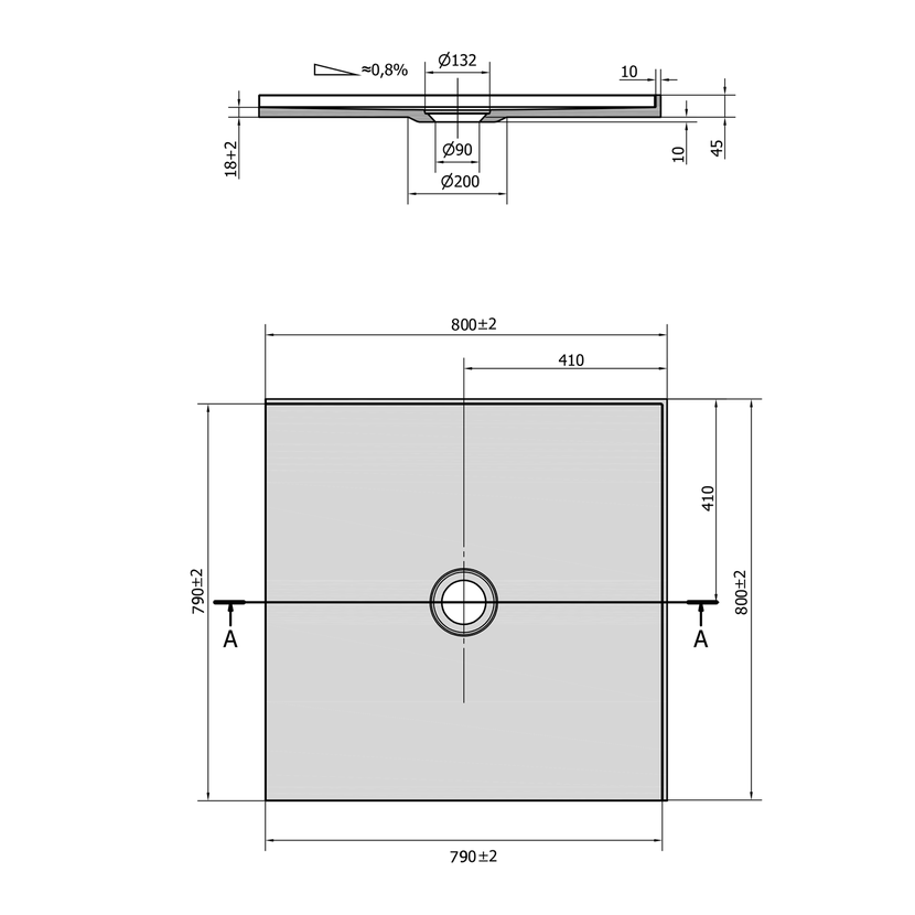 Drážky na spodní straně umožňují vaničku nalepit přímo na podlahu. Díky nízké výšce 18 mm lze dlažbu nalepit do stejné roviny s vaničkou.