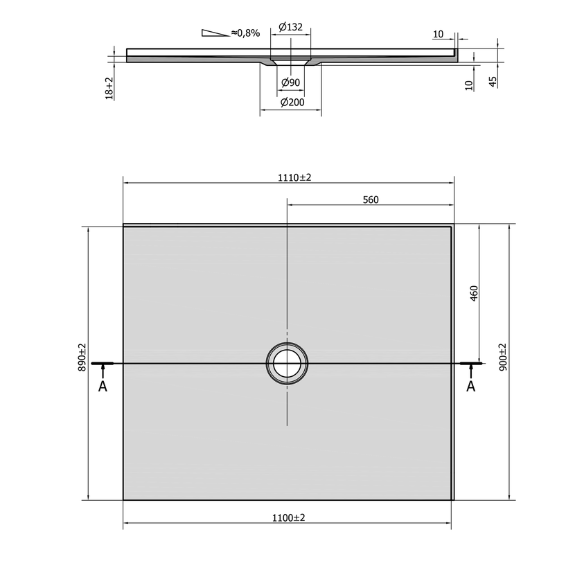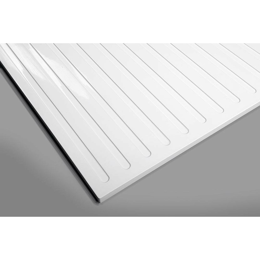 Drážky na spodní straně umožňují vaničku nalepit přímo na podlahu. Díky nízké výšce 18 mm lze dlažbu nalepit do stejné roviny s vaničkou.